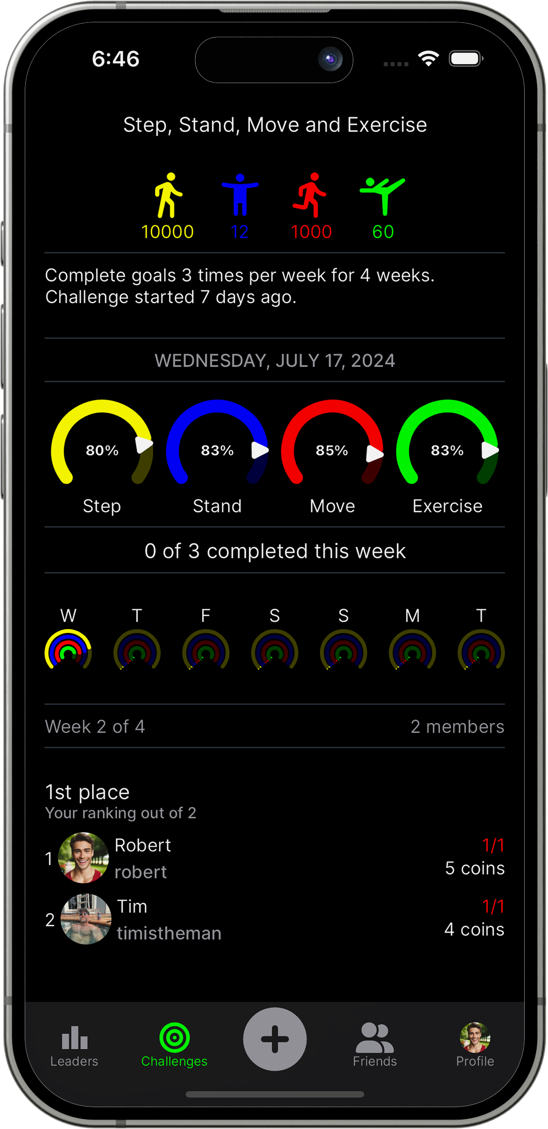 Introducing step, stand, move, the innovative app designed to make fitness a shared journey. Say goodbye to solo workouts and hello to exciting challenges with friends, family, and work colleagues. With our app, closing your Move, Exercise, Stand and Steps rings becomes a collective adventure, filled with motivation, encouragement, and a healthy dose of competition.